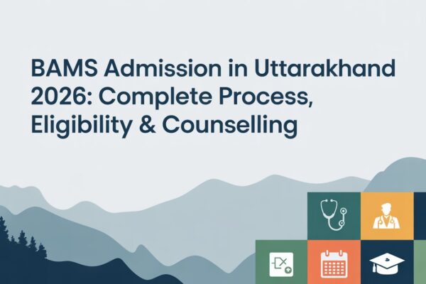 Getting admission in BAMS colleges in Uttarakhand is easier than many other states, but you need to know the complete process. If you have qualified NEET and want to study BAMS in Uttarakhand, this guide will help you step-by-step. We will explain the entire admission process in simple language so everyone can understand easily. Why Choose BAMS in Uttarakhand? Before we discuss the admission process, let’s understand why Uttarakhand is a smart choice for BAMS: Lower Competition: Compared to states like Maharashtra, UP, or Karnataka, Uttarakhand has moderate competition. Students with NEET ranks up to 4,00,000-5,00,000 can get admission in good private colleges. Affordable Fees: Both government and private BAMS colleges in Uttarakhand charge reasonable fees. The total course cost is lower than most other states. Natural Ayurveda Hub: Being in the Himalayan region, Uttarakhand has natural medicinal plants. This gives practical advantage to Ayurveda students. Safe Environment: Uttarakhand is safe for students. Parents can be tension-free sending their children here. Good Colleges: Colleges like Patanjali Ayurved College Haridwar, Himalayan Ayurvedic Medical College Dehradun, and Uttaranchal University provide quality education. BAMS Eligibility Criteria for Uttarakhand Before applying for BAMS admission in Uttarakhand, make sure you meet these requirements: Educational Qualification Passed 12th Class: Mandatory Subjects: Minimum Marks Required: Age Criteria Entrance Exam NEET-UG is 100% mandatory Domicile Requirements For State Quota (85% seats): For All India Quota (15% seats): For Private Colleges: NEET-UG 2026: Key Information Since NEET is mandatory, here’s what you need to know: NEET Exam Pattern Subject Questions Marks Physics 45 questions 180 marks Chemistry 45 questions 180 marks Biology (Botany + Zoology) 90 questions 360 marks Total 180 questions 720 marks Important Points: NEET Important Dates 2026 Event Tentative Date Application Start February 2026 Application Last Date March 2026 Admit Card Late April 2026 Exam Date First Sunday of May 2026 Result Early June 2026 NEET Rank for BAMS Uttarakhand For Top Colleges (Patanjali, Himalayan): For Good Private Colleges: For Management Quota: Complete BAMS Admission Process in Uttarakhand 2026 Step 1: Appear for NEET-UG Exam When: May 2026 How to Prepare: Application Process: Exam Day: Step 2: Check NEET Results When: June 2026 How to Check: What You Get: Qualifying Cut-off (Approximate): Step 3: Register for Counselling After NEET results, you have three counselling options: Option A: Uttarakhand State Counselling For: 85% state quota seats in government and private colleges Who Can Apply: When: July-August 2026 Process: Documents to Upload: Option B: All India Counselling (AACCC) For: 15% All India Quota in government colleges Who Can Apply: Students from any state When: July 2026 Process: Option C: Direct Admission in Private Colleges For: Private colleges offering direct admission Who Can Apply: Any NEET qualified student Process: Note: Some seats may cost more in management quota Step 4: Choice Filling What is Choice Filling? Selecting colleges in order of your preference. How to Fill: Smart Strategy: Step 5: Seat Allotment How it Works: System allots seats based on: Allotment Rounds: If You Get Seat: If You Don’t Get Seat: Step 6: Document Verification When: Within 2-3 days of seat allotment Where: At allotted college or designated center Documents Required (Original + 2 Photocopies): Academic Documents: NEET Documents: Identity Proof: Category Documents (if applicable): Other: Verification Process: Step 7: Fee Payment When: Within 2-3 days of document verification How to Pay: Fee Amount (Approximate): Government Colleges: Private Colleges: Additional Costs: Important: Keep all payment receipts safe. You’ll need them throughout the course. Step 8: Complete Admission Final Steps: Orientation: Before Classes Start: Types of Seats in Uttarakhand BAMS Colleges State Quota (85%) All India Quota (15%) Management Quota NRI Quota Documents Checklist Print this and tick while collecting: Academic: NEET: Identity: Category (if applicable): Others: Important Tips for BAMS Admission in Uttarakhand 1. Start NEET Preparation Early Begin at least 12-18 months before exam. Join good coaching or study systematically. 2. Score Well in Biology Biology has 360 marks (50% of total). Master it for better rank. 3. Apply for Both State and All India Counselling Register for both to increase chances. 4. Research Colleges Before Choice Filling Visit college websites, read reviews, check facilities. 5. Fill Maximum Choices Don’t limit yourself. Fill 80-100 choices if possible. 6. Keep All Documents Ready Start collecting documents after NEET exam. Don’t wait for results. 7. Check Websites Daily During Counselling Counselling moves fast. Check for updates daily. 8. Don’t Miss Deadlines Set reminders for important dates. Missing deadline = losing seat. 9. Carry All Documents on Verification Day Double-check everything before leaving home. 10. Pay Fees on Time Don’t delay fee payment. Your seat can be cancelled. Frequently Asked Questions Q1. Can I get BAMS admission in Uttarakhand without domicile? Yes, you can apply for All India Quota or direct admission in private colleges. Q2. What is the last date for BAMS admission in Uttarakhand? Counselling happens in July-September 2026. Check official website for exact dates. Q3. Can I change college after taking admission? Yes, through subsequent counselling rounds, but fees may not be refunded. Q4. Is management quota legal? Yes, private colleges can fill some seats through management quota with higher fees. Q5. What if I miss document verification? Your seat will be cancelled and given to next candidate in the merit list. Conclusion BAMS admission in Uttarakhand 2026 is a straightforward process if you follow the steps carefully. Qualify NEET, register for counselling, fill smart choices, attend ve